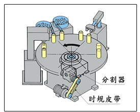 转位分度  按照下列方式:停顿、转位、停顿、转位,转位分度器作间歇性分度运动。通常输入轴转一周,输出轴完成一个工位,即1个停顿+1个转位。  |